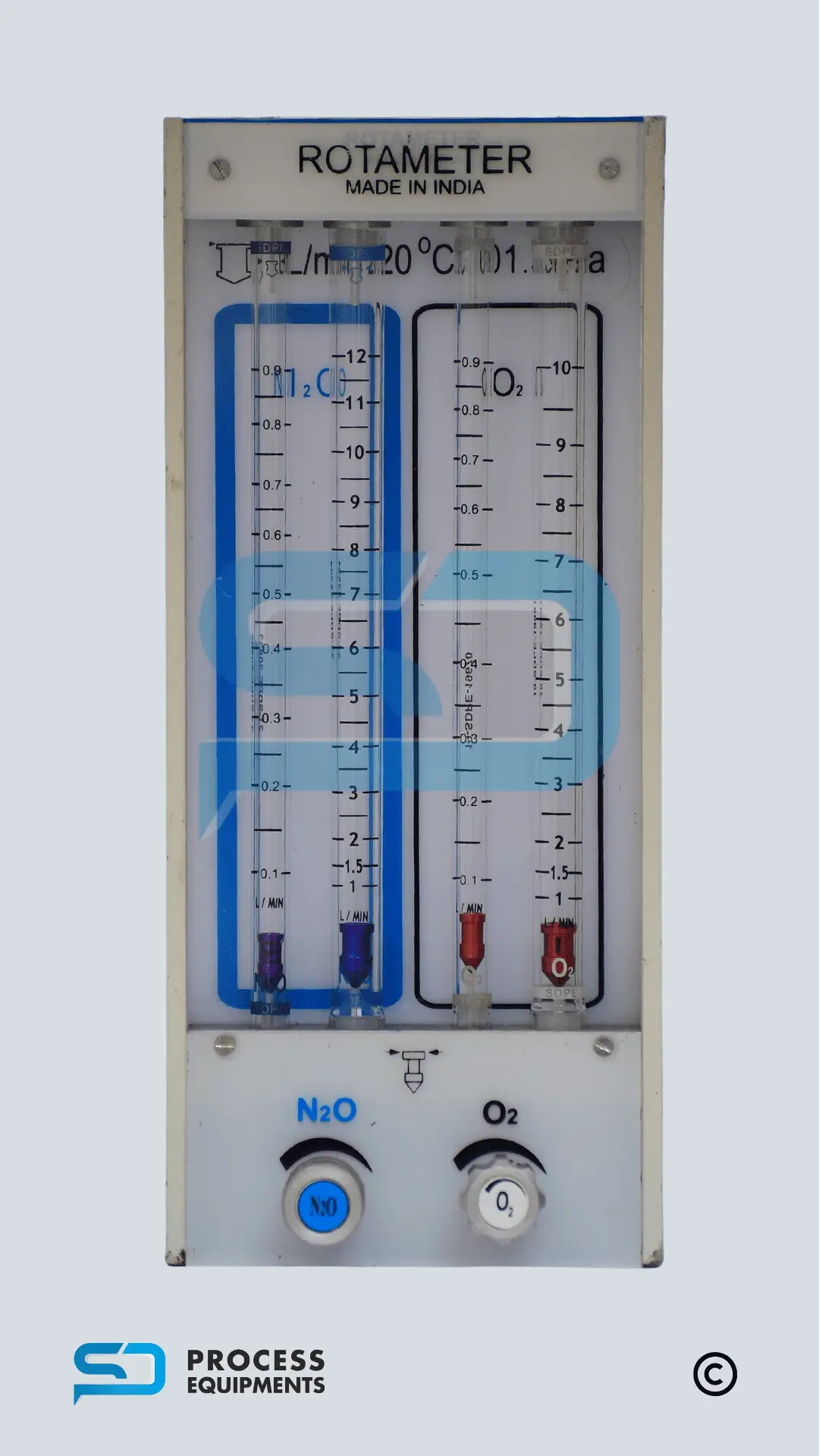 Flow Meter consist of housing and a set of calibration glass tube with bobbin float. Calibration tube can be provided in a combinations of (O2+N2O) or customer requirement.