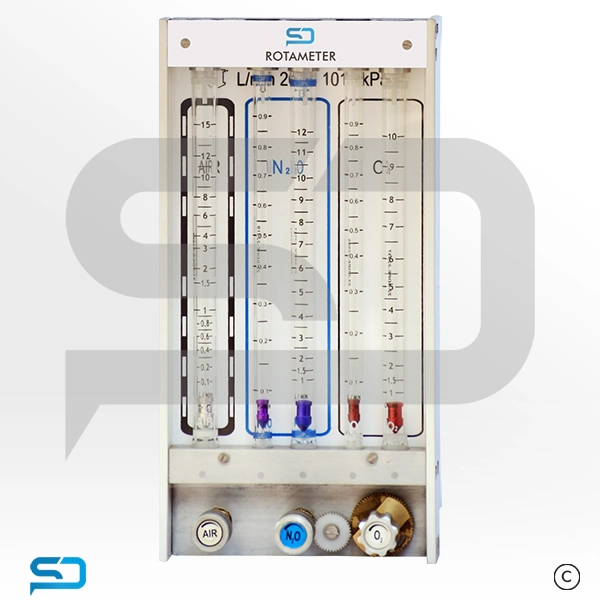 Flow Meter consist of housing and a set of calibration glass tube with bobbin float. Calibration tube can be provided in a combinations of (O2, N2O & AIR) or customer requirement.