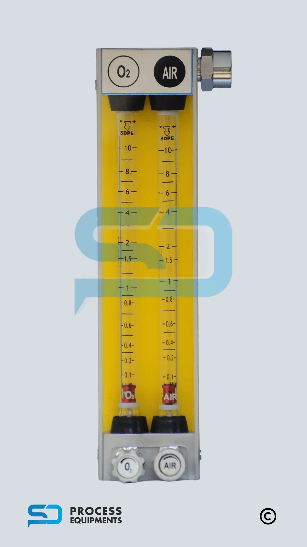 SDPE Veternity Anesthetic Flow Meter (Rotameter) consist of housing and single, dual oxygen calibrated glass tubes with float.